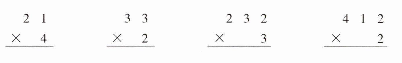 $\begin{matrix}2&2 &2\\×&4\\\hline 8&8&8\end{matrix}$