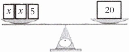(3) 天平左边是2个x和5,右边是20,左右平衡,所以2x+5=20。