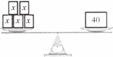(2) 天平左边有5个x,右边是40,左右平衡,所以5x=40。