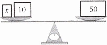 (1) 天平左边是x和10,右边是50,左右平衡,所以x+10=50。