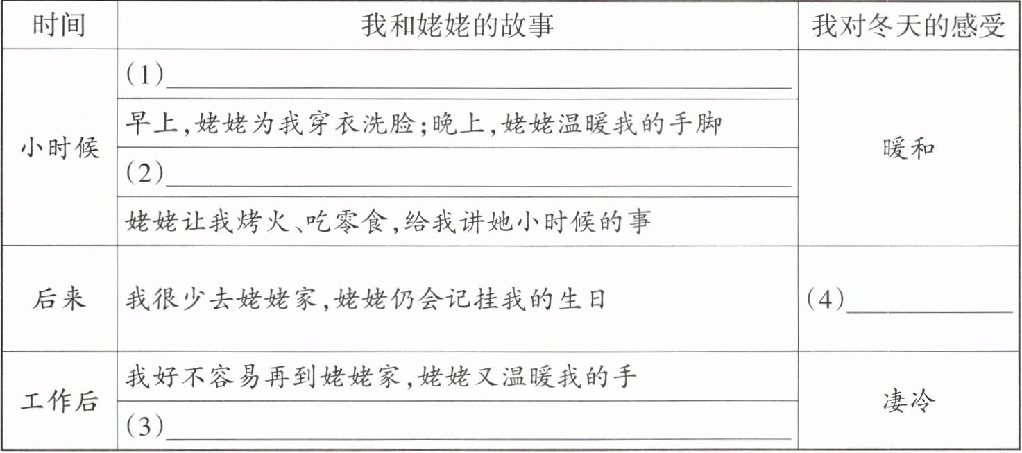 ③ 她起床的时候,会把我的衣服藏在被子里,或是放在炭火旁的板凳上。我醒了一喊她,她便从外面小跑过来,给我拿出暖和的衣服。穿好衣服后,她倒了热水给我洗脸,然后打开一瓶雅霜(一种护肤品)给我抹上。那些冬日的早晨,都是雅霜的香味。晚上我洗完澡,姥姥早已把热水袋放在我脚的位置,然后还要把我冰凉的手放在她的胸口焐着。那时候,我只是感到暖和,却不知道那一个个冰冷而不自知的冬天,是姥姥一点点把我焐热的。