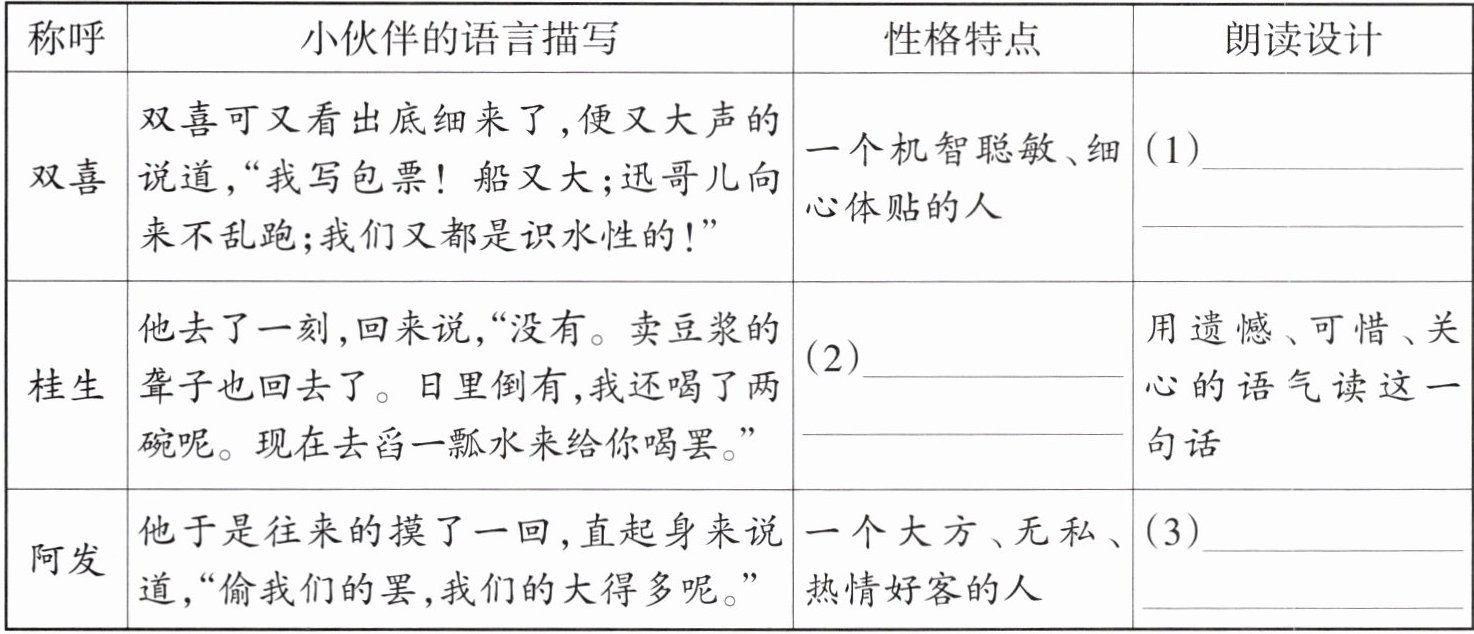 1. 阅读全文,补全表格中的内容。