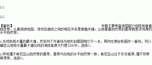 1.图中山地降水量最大值出现的海拔高度大约是( )