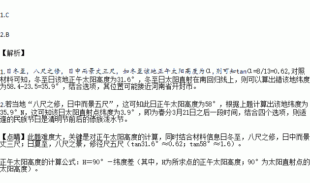 ¹ç±íÊÇÊÀ½çÉÏ×îÔçµÄ¼ÆÊ±Æ÷¡£Ö±Á¢µÄ±ê¸ËΪ±í£¬ÕýÄÏÕý±±·½Ïòƽ·ÅµÄ¿Ì°åΪ¹ç¡£ÓÃÆä²âÁ¿ÕýÎç±íÓ°³¤¶È£¬¿ÉÈ·¶¨½ÚÆø¡¢»®·Ö¼¾½ÚºÍÖÆ¶¨Àú·¨µÈ¡£¾Ý¡¶»´ÄÏ×Ó¡¤ÌìÎÄѵ¡·¼ÇÔØ£ºÈÕ¶¬ÖÁ£¬°Ë³ßÖ®ÐÞ£¬ÈÕÖжø¾°ÕÉÈý³ß£»ÈÕÏÄÖÁ£¬°Ë³ßÖ®¾°£¬ÐÞ¾¶³ßÎå´ç£¨tan31.6¡ã¡Ö0.62£»tan58¡ã¡Ö1.6£©¡£¾Ý´ËÍê³ÉÏÂÁи÷Ìâ¡£