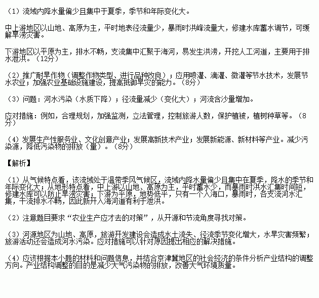 (2)针对流域水资源匮乏的现状,简述农业生产应采取的对策。(8分)