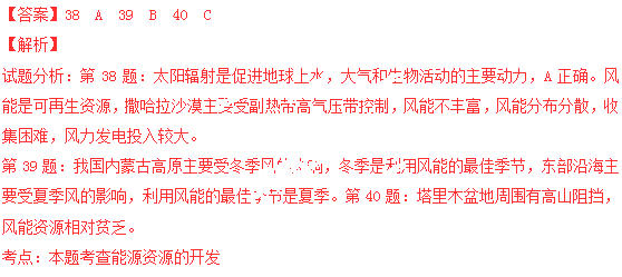 ÄÜÔ´ÊÇÏÖ´úÈËÀàÉú´æ·¢Õ¹µÄÖØÒª×ÊÔ´¡£×÷ΪÇå½àÄÜÔ´µÄ·çÄܾßÓÐÖØÒªµÄÀûÓüÛÖµ¡£Íê³É38¡«40Ìâ¡£