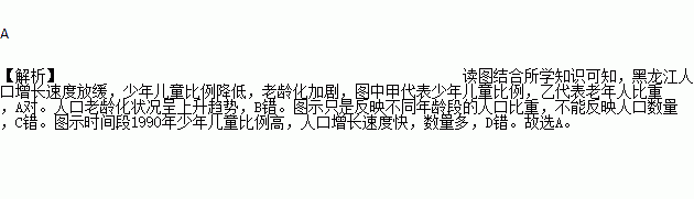 2016年4月,黑龙江推出地方性人口与计划生育条例,规定少数民族、边境城市人口等六种情形下可生育三胎。图7为1990-2015年黑龙江省少年儿童(0-14岁)和老年(65岁以上)人口比重变化图。完成下题。关于图中黑龙江省人口状况的叙述,正确的是