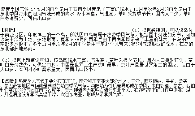 (1)图中岛屿的气候类型是________,当地有5~8月和11月至次年2月两个雨季,请分析其形成原因_____________。