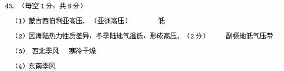 (3)D地7月盛行__________风,其形成原因是______________________________________,由此可见,季风气候的形成原因除_______________________________________________外,还有______________________________________________________等。(各2分)