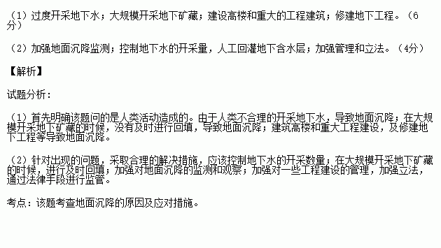 (1)简述造成地面沉降的主要的人类活动。(6分)