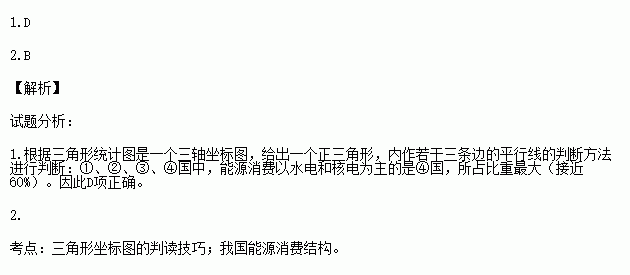 1.①、②、③、④国中,能源消费以水电和核电为主的是( )