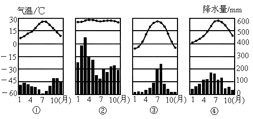 图中①、②、③、④能正确表示甲、乙两地气候类型的是