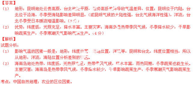 (2)Óëɽ¶«Ê¡Ïà±È£¬º£ÄϵºµÄÆøºò¸üÓÐÀûÓÚÊß²ËÉú²ú£¬ÆäÓÅÊÆÓÐÄÄЩ£¿º£Äϵº³ÉΪÁËÎÒ¹ú¶¬¼¾µÄ¡°²ËÀº×Ó¡±£¬Æä¶¬¼¾Êß²ËÉú²úÃæÁÙµÄÖ÷Òª×ÔÈ»ÔÖº¦ÊÇʲô£¿(4·Ö)