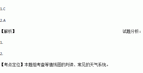 2.此时图中城市的风向及24—36小时之间城市可能的天气状况为( )