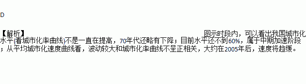 读我国城市化进程示意图,图示时间段内,我国城市化( )