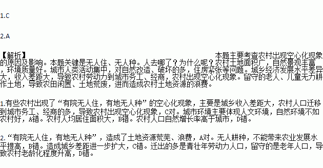 近年来,我国有些农村出现了“有院无人住,有地无人种”的空心化现象。完成下面小题。