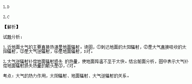 2.表示大气补偿地面辐射损失热量的箭头是( )