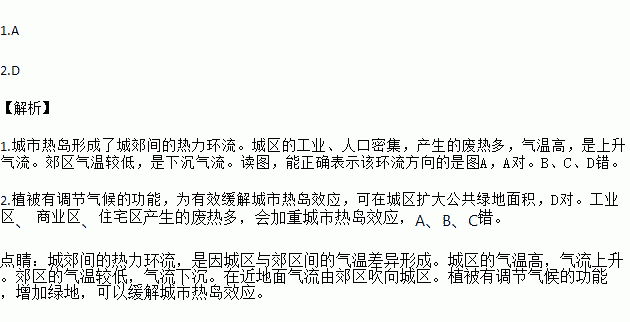 1.城市热岛形成了城郊间的热力环流。以下四图中,能正确表示该环流方向的是