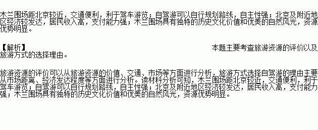 分析木兰围场吸引北京及附近的游客选择自驾游的原因。