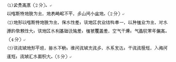 (2)读材料二,分析导致该地区2009-2010年发生严重旱情除降水因素以外的其他主要原因。(8分)