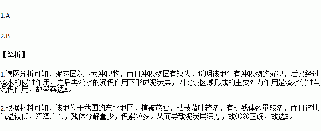 1.图中泥炭层所在区域形成的主要外力作用是