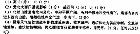 (3)简析欧洲西部地区地形对极地冷空气南下的影响。