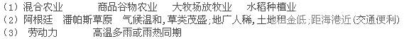 ⑵③代表的农业地域类型,其代表性的国家是 ,该国这种农业地域类型主要分布在__________,其有利区位条件有_________________________________________________