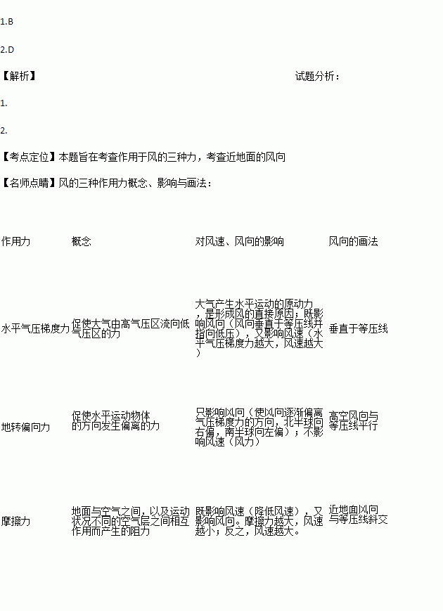 2.如果所示等压线位于高考,F1为气压梯度力方向,则风向是