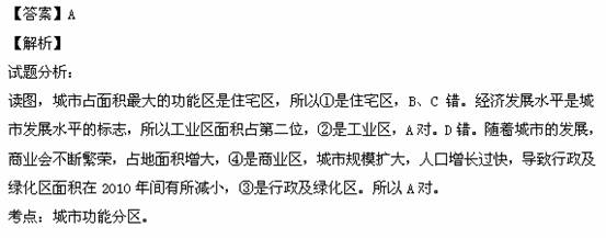 D.住宅区、商业区、工业区、行政及绿化区