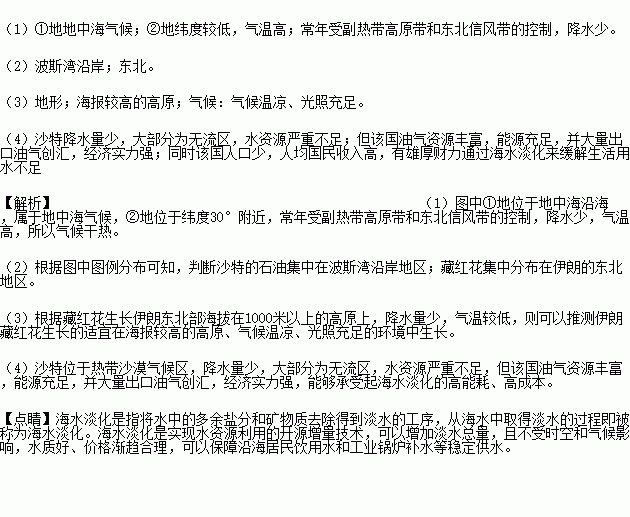 (4)海水淡化能源消耗大,成本较高。简析沙特阿拉伯重视海水淡化的原因。