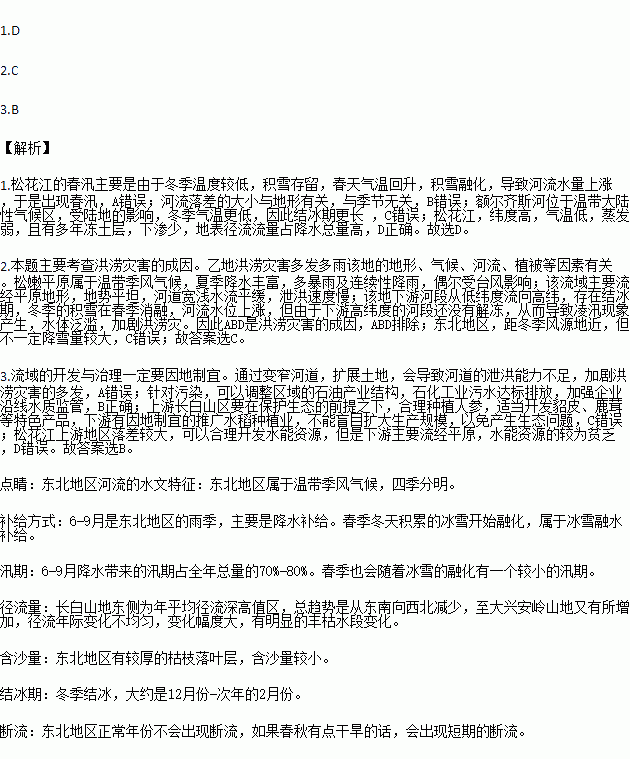 3.松花江流域是我国北方少水地区之一,洪涝、水质污染、水资源短缺等问题严重制约着流域内经济的发展,下列关于松花江流域综合开发治理符合因地制宜原则的是( )