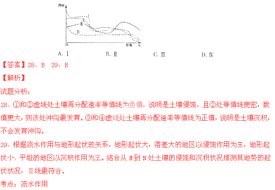 29.上图中沿MN线所作的地形剖面,最有可能是下图中的哪一条曲线