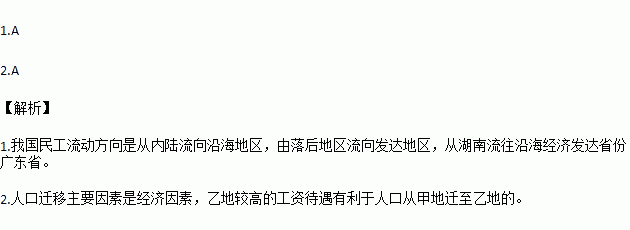 2.下列因素中,有利于人口从甲地迁至乙地的是( )