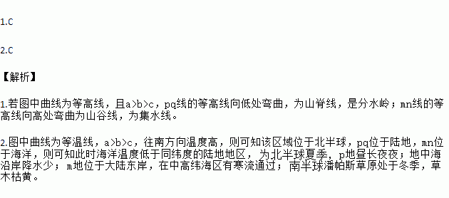 2.ÈôͼÖÐÇúÏßΪµÈÎÂÏߣ¬a>b>c£¬ÇÒͼʾµØÇøÎª´ó·¶Î§µÄ¡¢º£Â½¼æ±¸µÄµØÇø£¬pqλÓÚ½µØ£¬mnλÓÚº£Ñó£¬Ôò´Ëʱ