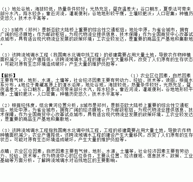 (2)B城市将建成国际物流中心,多式联运 枢纽地位。试分析其有利的区位条件。
