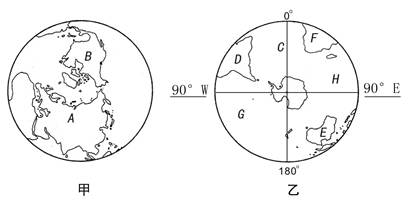 (1)甲图所示为 半球,乙图所示为 半球(南北);