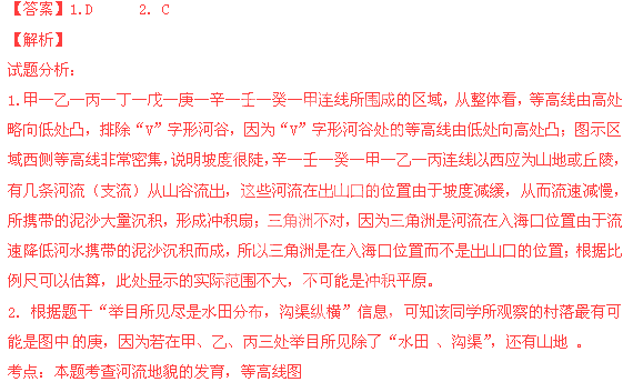 1.图中由甲—乙—丙—丁—戊—庚—辛—壬—癸—甲连线所围成的区域属于哪种河流地貌( )