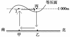 (2)假若图示区域位于北半球,则甲、乙之间的风向为______,丙、丁之间的风向为________。(4分)