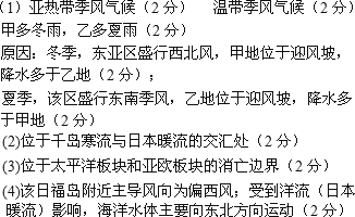 甲、乙两地降水季节差异是________。原因是________、________