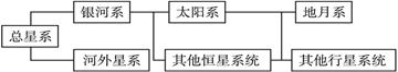 C.太阳系与银河系是同一级别的天体系统,不对。太阳系比银河系级别低。
