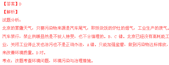 2013年1月,北京遭受4次雾霾天气。关于北京雾霾的治理措施,合理的是