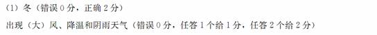 (1)此图所示季节为____(冬、夏)季,此时韩国南部沿海地区的天气状况:___ _____。(4分)