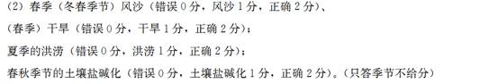 (2)写出不同季节图中①地发展农业的主要障碍。(8分)
