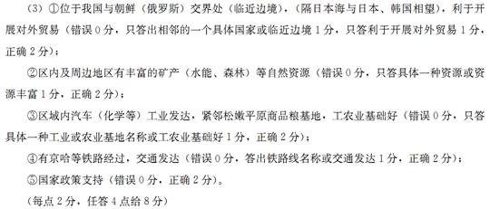 (3)图中②阴影区域为我国的长吉图开发开放先导区(包括吉林省长春市、吉林市部分区域和延边朝鲜族自治州),试分析其发展的有利因素。(8分)