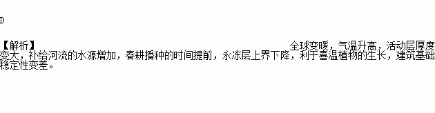 C.永冻层上界上升,利于喜温植物的生长 D.永冻层上界下降,建筑基础稳定性变差