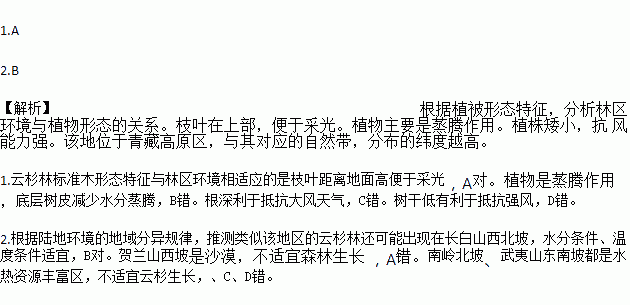 2.根据陆地环境的地域分异规律,推测类似该地区的云杉林还可能出现在