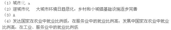 (4)②图中,A、B两类国家劳动力的就业结构与国家经济发展水平之间的关系是_________________________________ 。(3分)