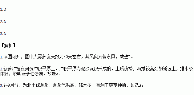 2.菠萝种植在河流冲积平原海拔较高的缓坡上,说明菠萝