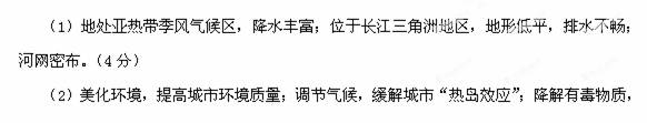 (2)试说明城市湿地对城市生态环境所起的主要作用。(6分)