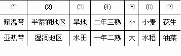 (1)填写下表,比较安徽省甲河以北和乙河以南地区的差异。(3分)